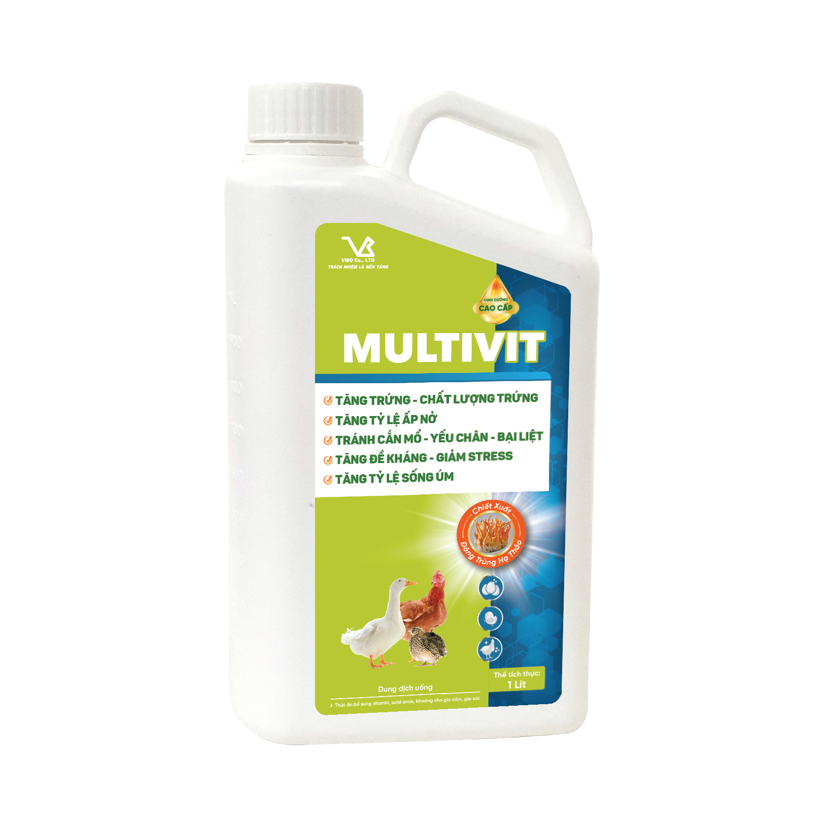 - Gia cầm đẻ: 1ml/1-1,5 lít nước uống.