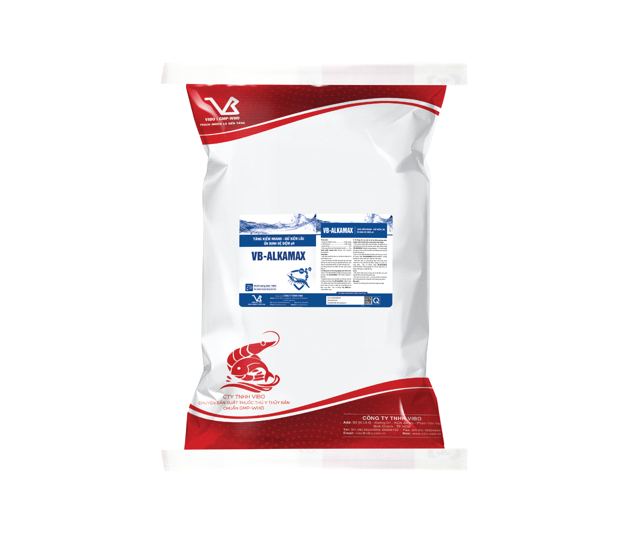 - Duy trì và ổn định độ kiềm, hệ đệm, pH trong ao nuôi: Sử dụng 10kg VB-ALKAMAX/1.500-2.000m3 định kỳ 2 lần/tuần.