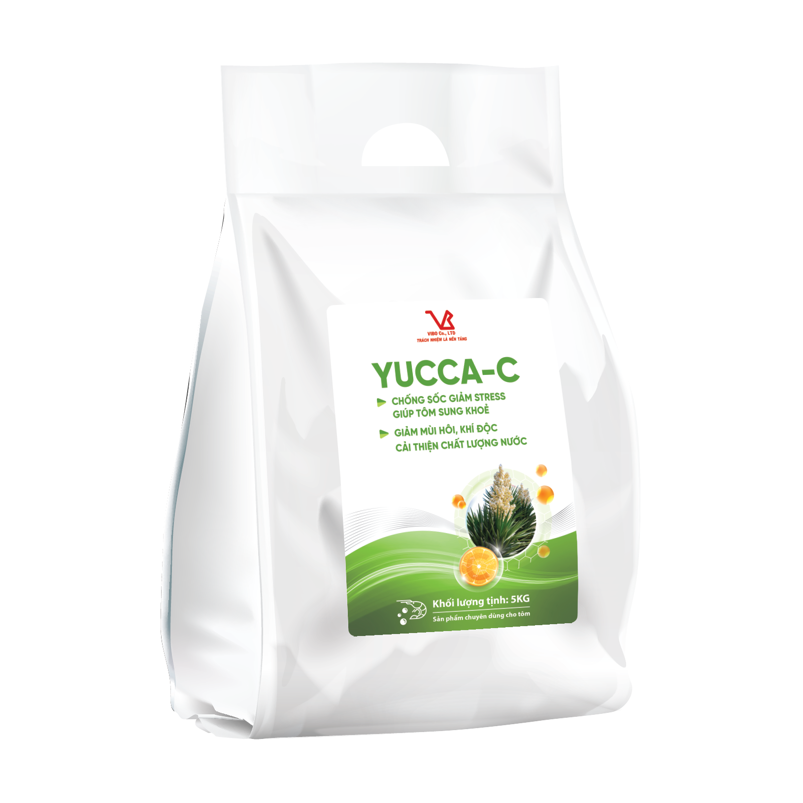 - Chống sốc, chống stress và dùng trước khi thả giống, san thưa giúp giảm hao hụt tăng tỷ lệ sống cho tôm: Dùng 1kg YUCCA-C/1.500-2.000m3 nước, trước 30 phút.