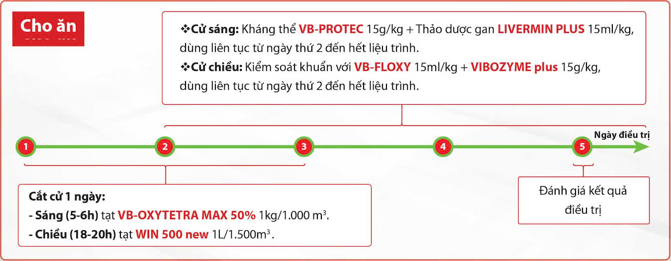 Morning (5–6 AM): Apply VB-OXYTETRA MAX 50% at 1 kg/1,000 m³.