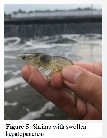 (Figure 5: Shrimp with swollen hepatopancreas)