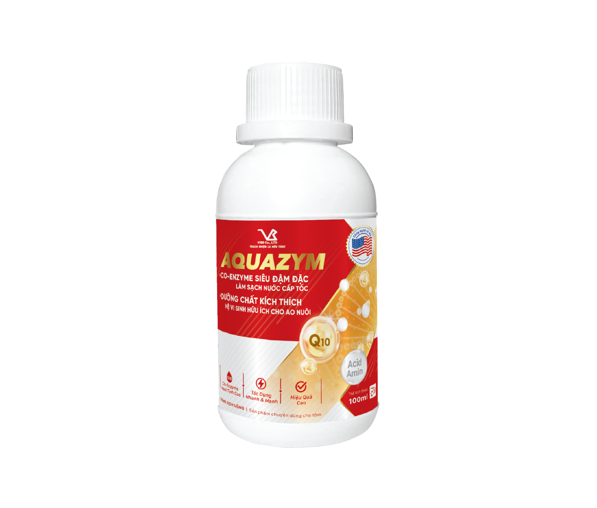 - AQUAZYM cung cấp dưỡng chất kích thích vi sinh phân huỷ chất hữu cơ lơ lửng, phân tôm và thức ăn dư thừa giúp làm sạch nước và ổn định màu nước, giảm hình thành khí độc trong ao nuôi.