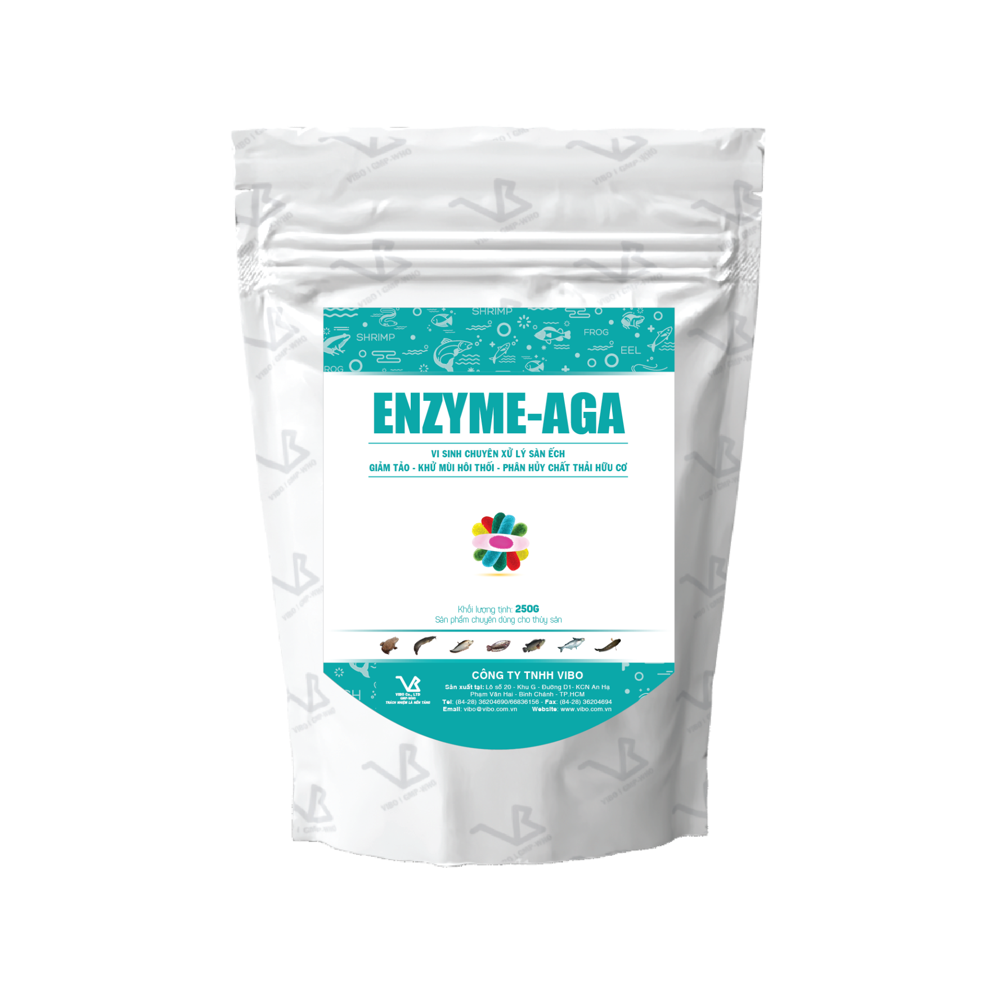 - Sử dụng định kỳ giúp giảm mùi hôi, cải thiện chất lượng nước: Dùng 250g ENZYME-AGA/1.000m3 nước, 2 lần/tuần trong suốt vụ nuôi.