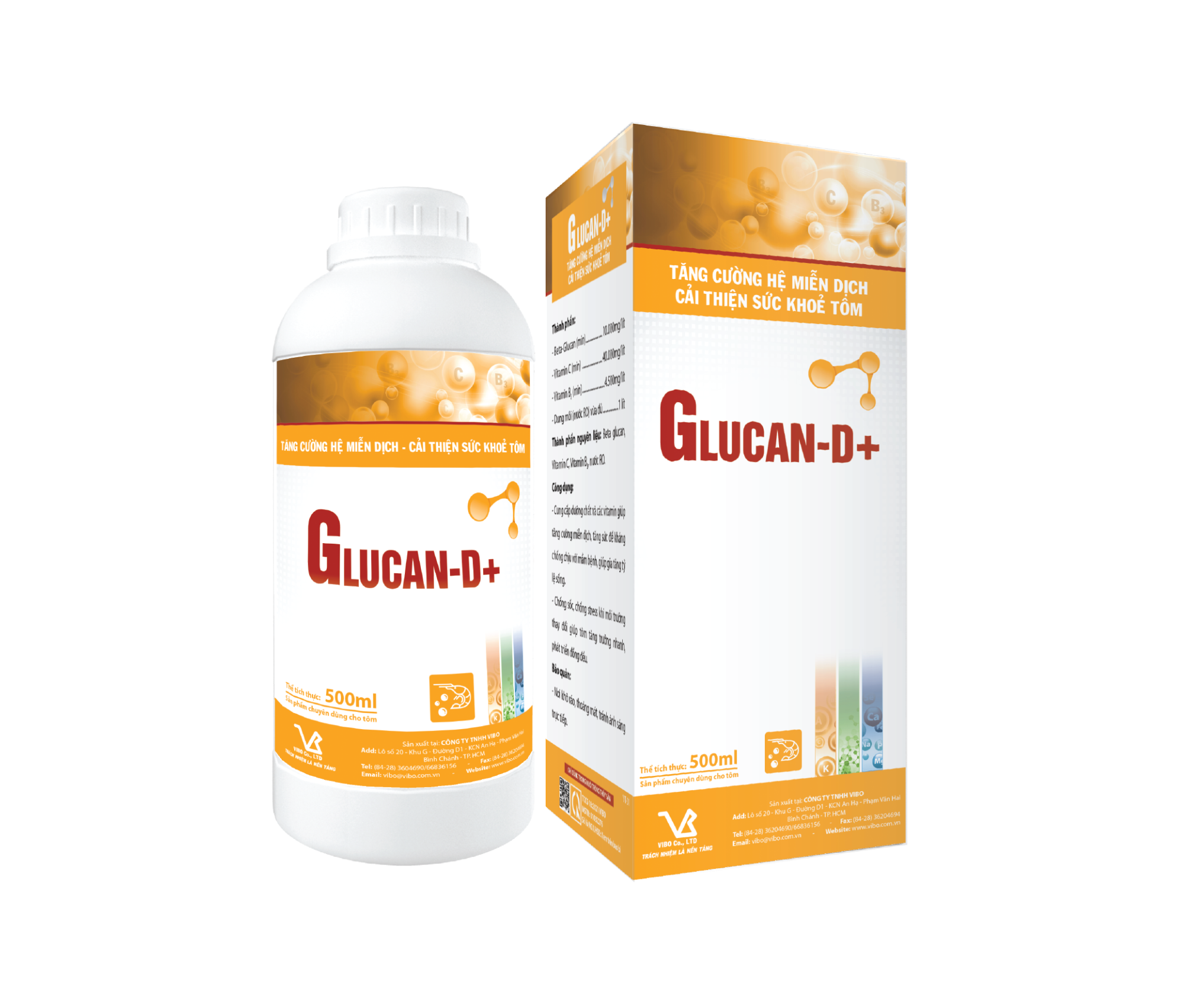 - Tăng cường miễn dịch, tăng sức đề kháng cho tôm: Dùng 3–5 ml GLUCAN-D+/1 kg thức ăn, cho ăn định kỳ 2–3 lần/tuần, trong suốt vụ nuôi.