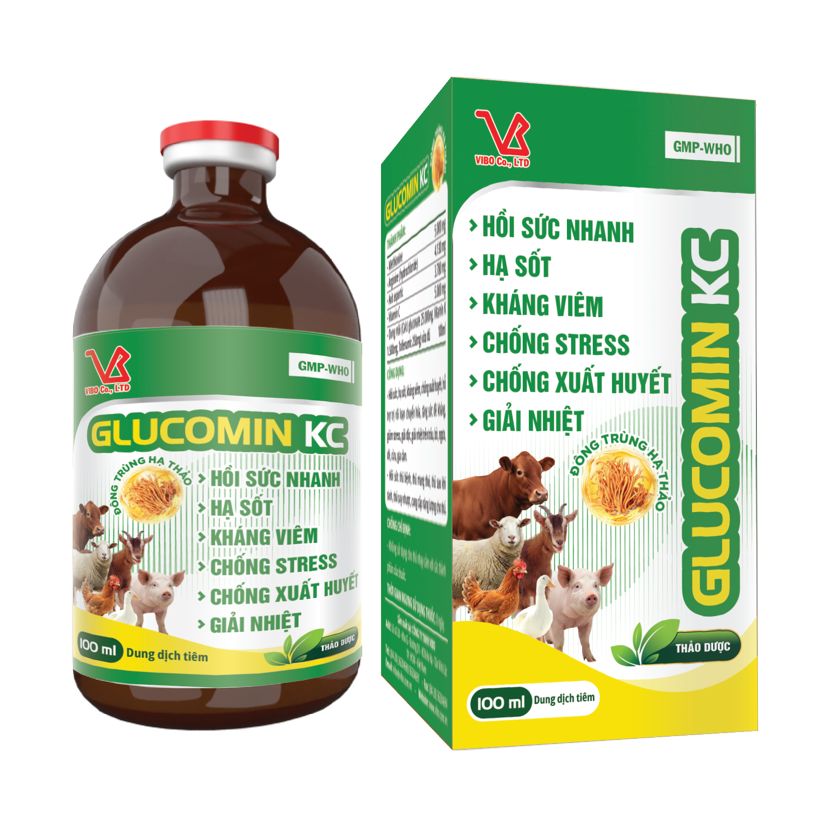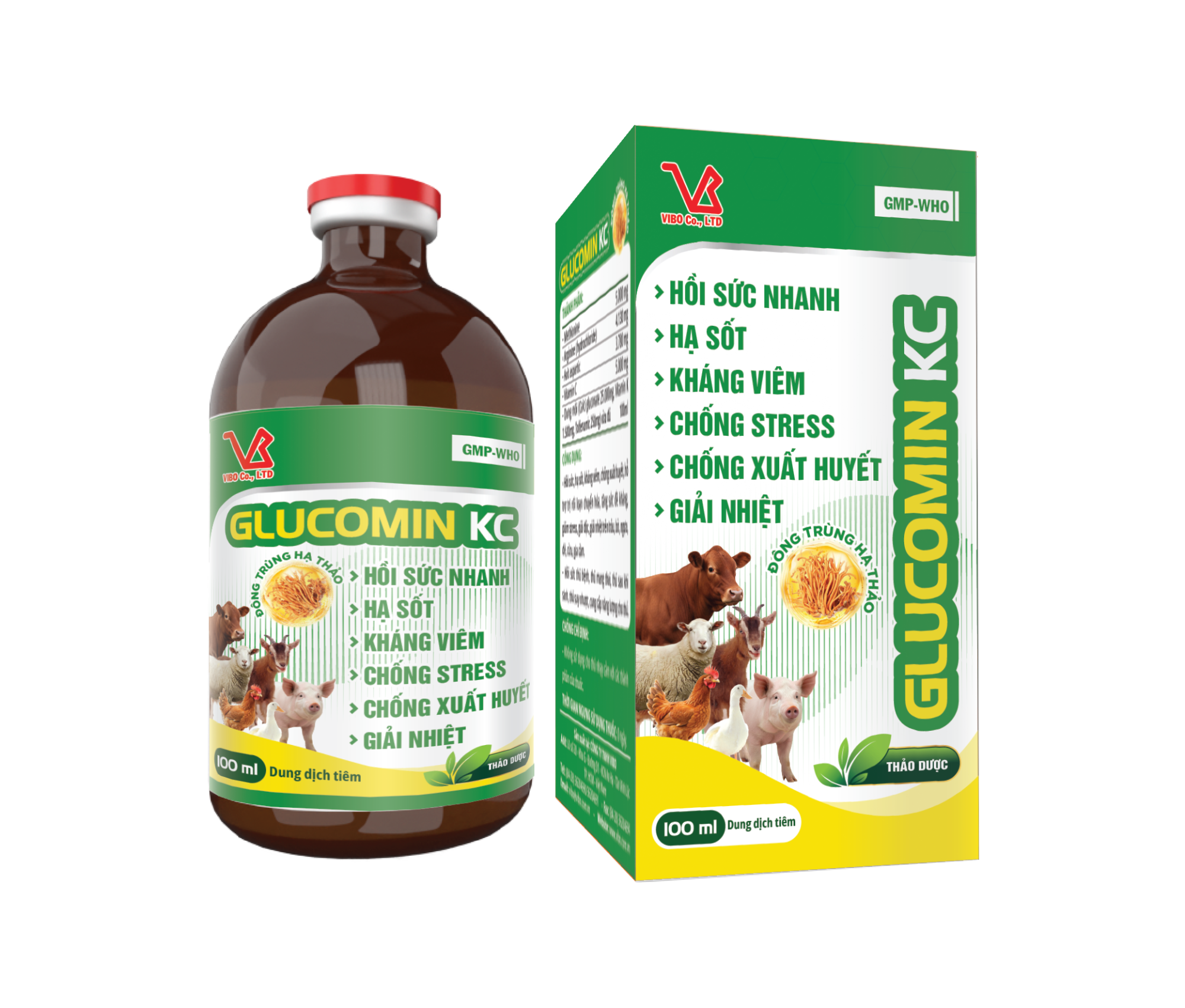 - Hồi sức, hạ sốt, kháng viêm, chống xuất huyết, hỗ trợ trị rối loạn chuyển hóa, tăng sức đề kháng, giảm stress, giải độc, giải nhiệt trên trâu, bò, ngựa, dê, cừu, gia cầm.