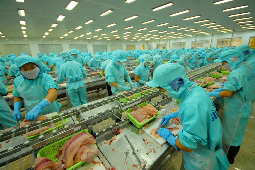 Chế biến cá tra xuất khẩu.