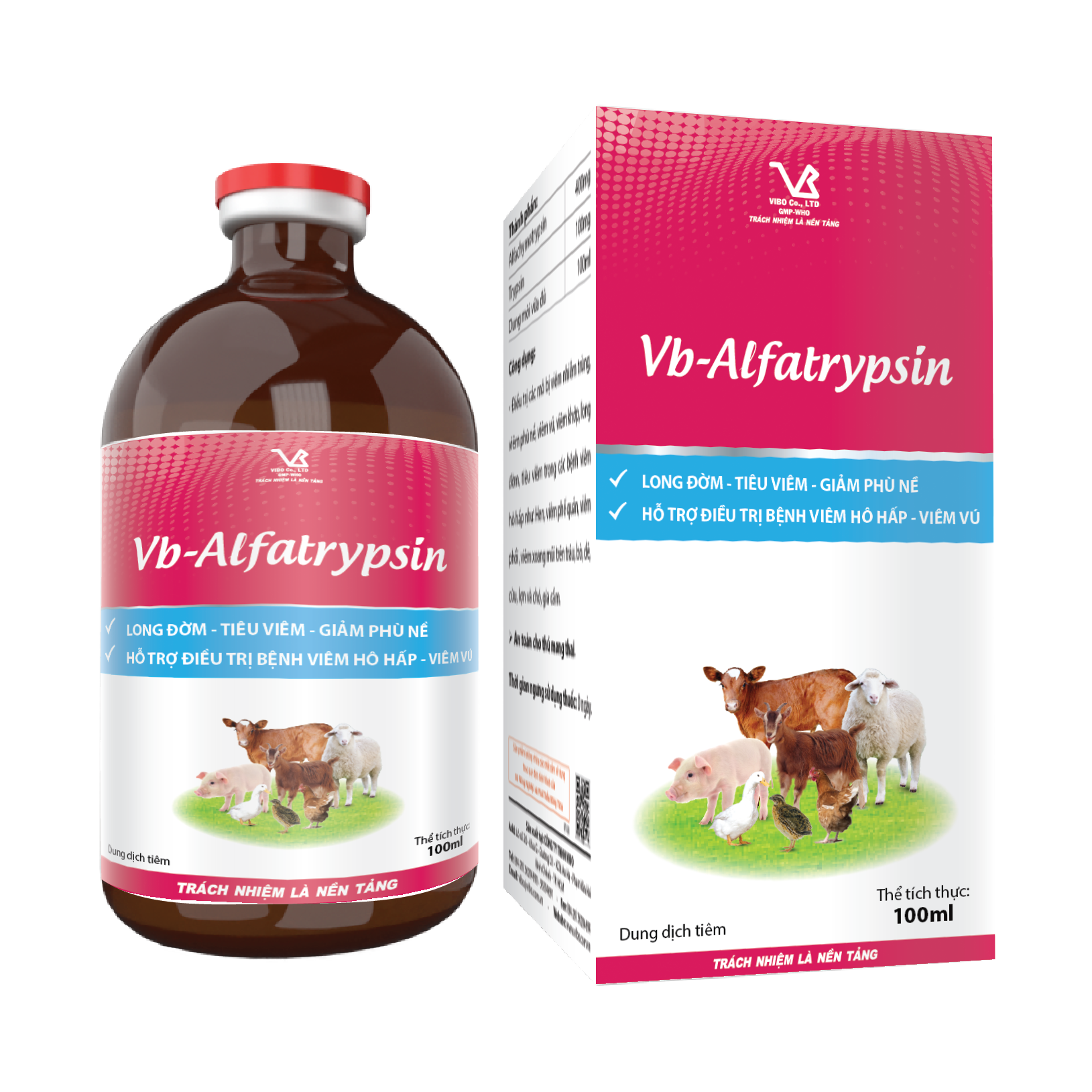- Điều trị các mô bị viêm nhiễm trùng, viêm phù nề, viêm vú, viêm khớp, long đờm, tiêu viêm trong các bệnh viêm hô hấp như: Hen, viêm phế quản, viêm phổi, viêm xoang mũi trên trâu, bò, dê, cừu, lợn và chó, gia cầm.