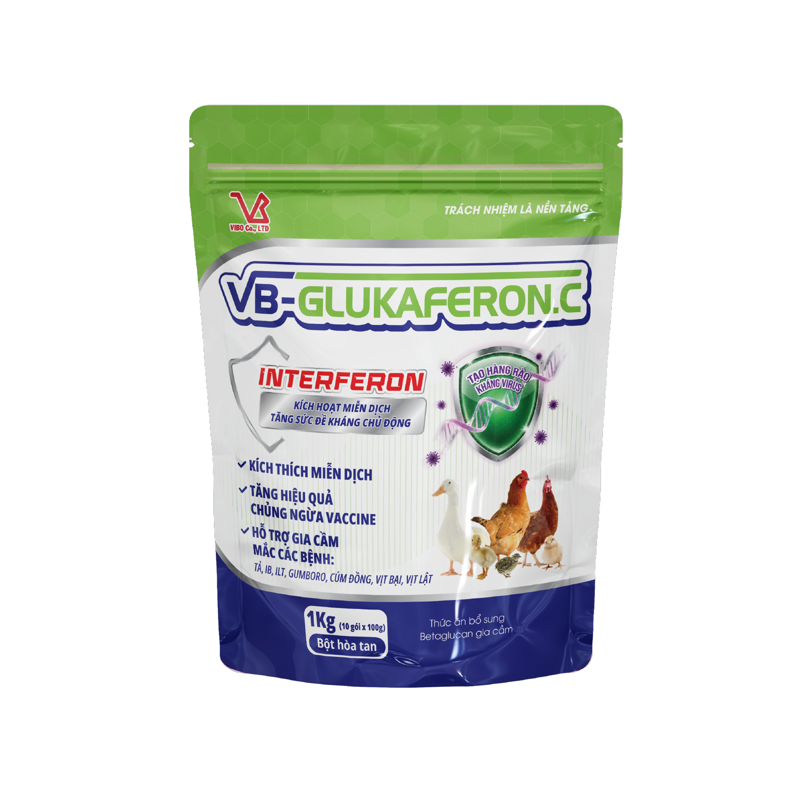 - Tăng đáp ứng miễn dịch, tăng hiệu giá kháng thể khi chủng ngừa vaccine, kích thích miễn dịch tự nhiên, hỗ trợ khi gia cầm mắc bệnh truyền nhiễm: tả, cúm, IB, ILT, Gumboro, cúm đồng, vịt lật, Reovirus.