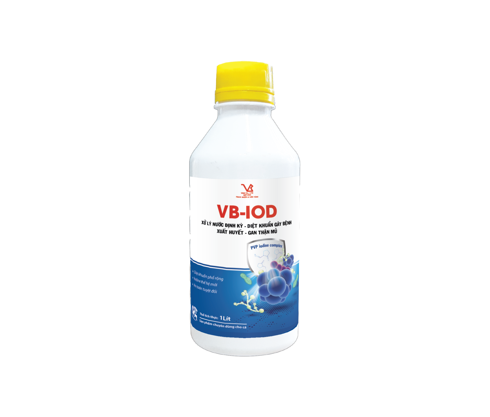 - Xử lý khuẩn trường hợp cá bệnh: Dùng 1 lít VB-IOD/ 3.000-4.000m3 nước, xử lý 2 ngày liên tục.