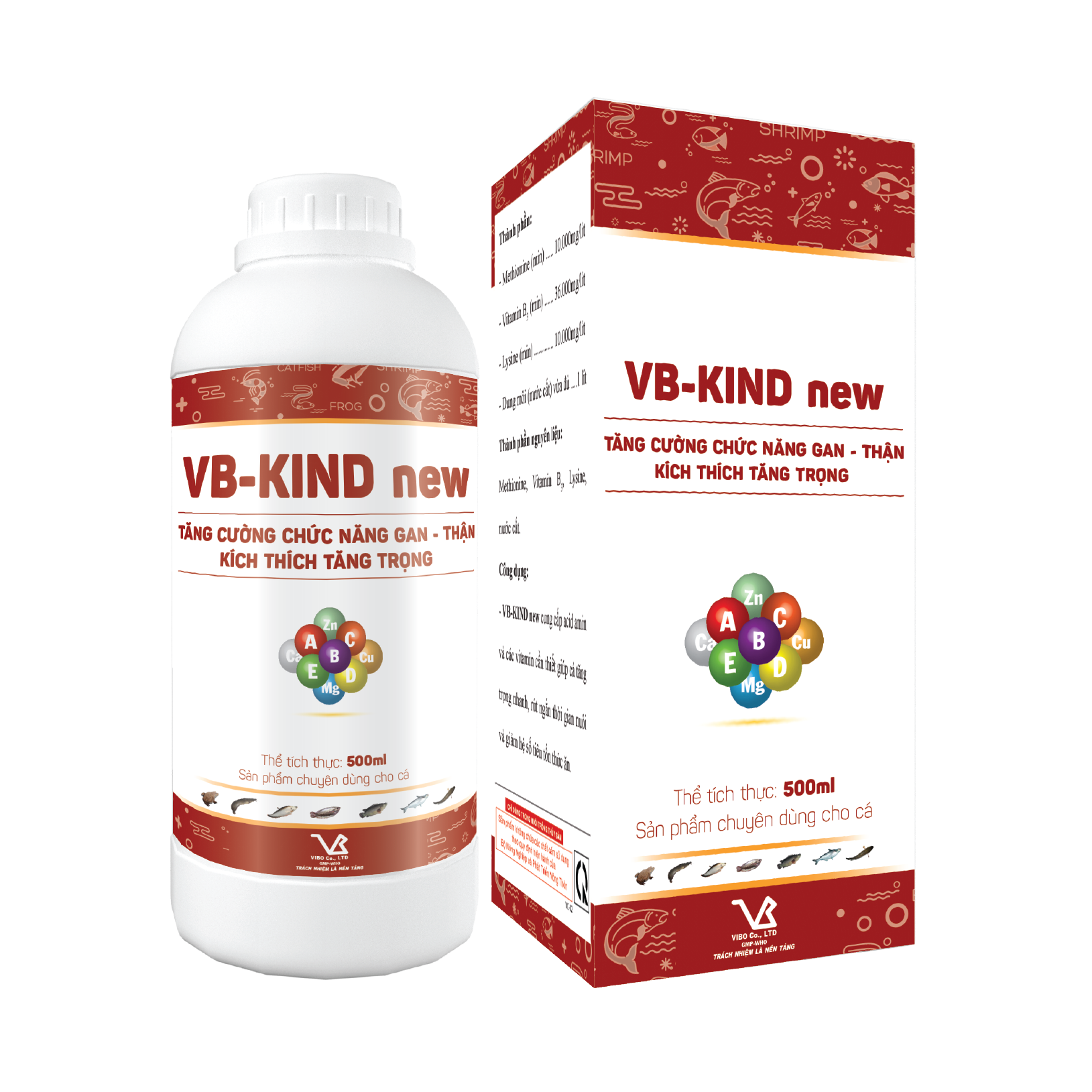 - VB-KIND new cung cấp acid amin và các vitamin cần thiết giúp cá tăng trọng nhanh, rút ngắn thời gian nuôi và giảm hệ số tiêu tốn thức ăn.
