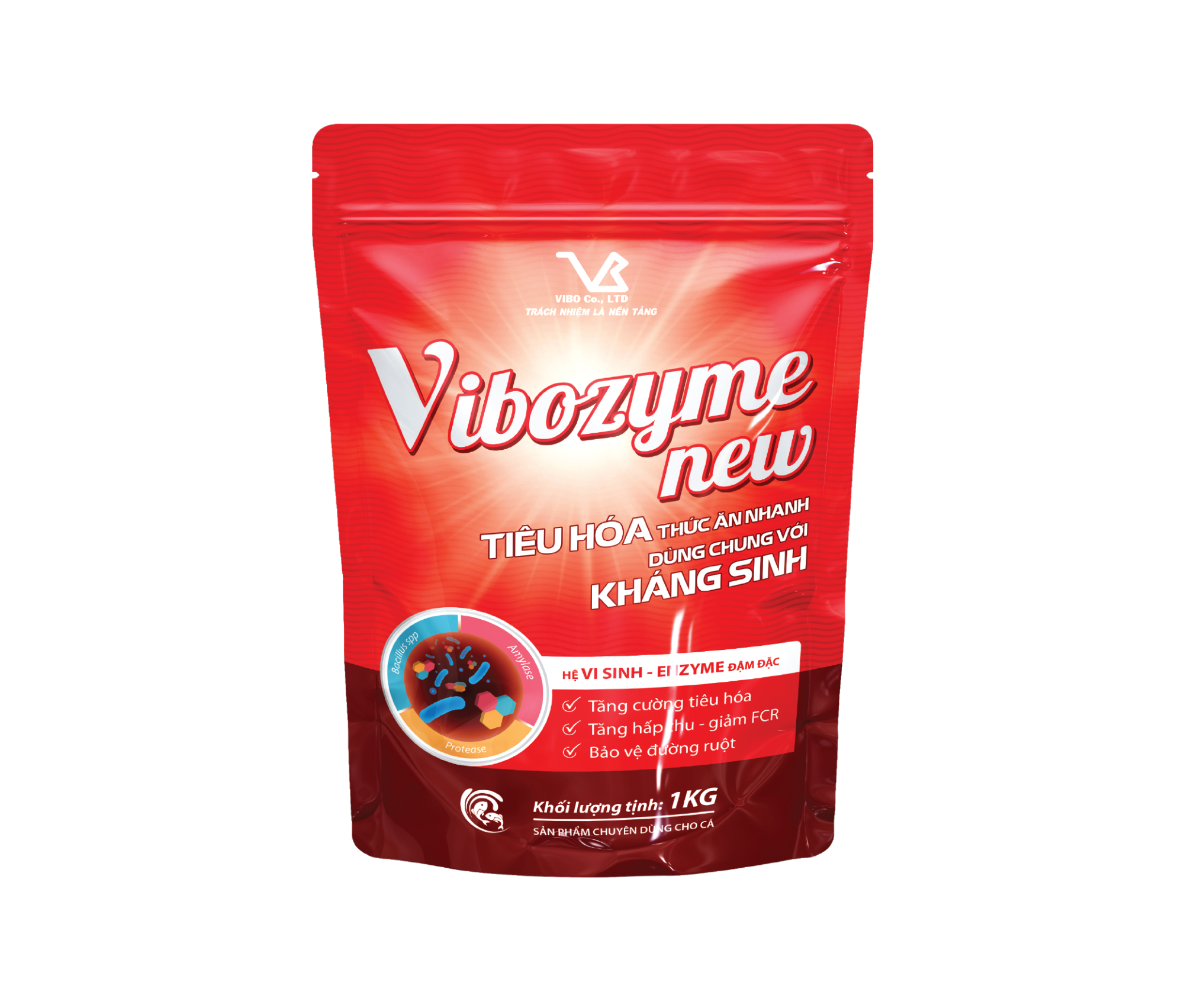 - VIBOZYME new bổ sung các enzyme tiêu hóa, các chất dinh dưỡng cần thiết cho cá.
